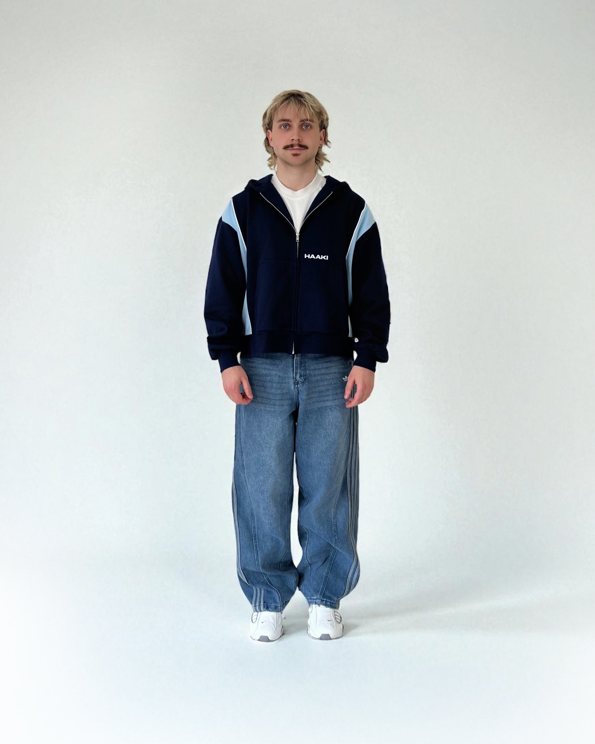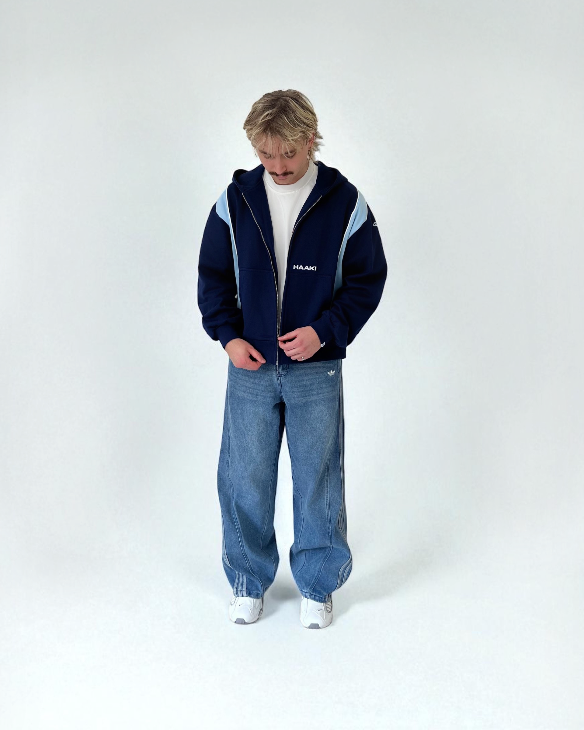 Luxury Panel Zip Hoodie - Dark Navy / Sky Blue